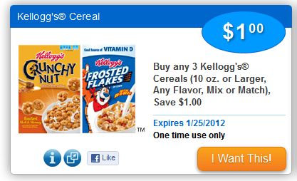 Use the $1/3 Kellogg’s Cereals coupon PRINT